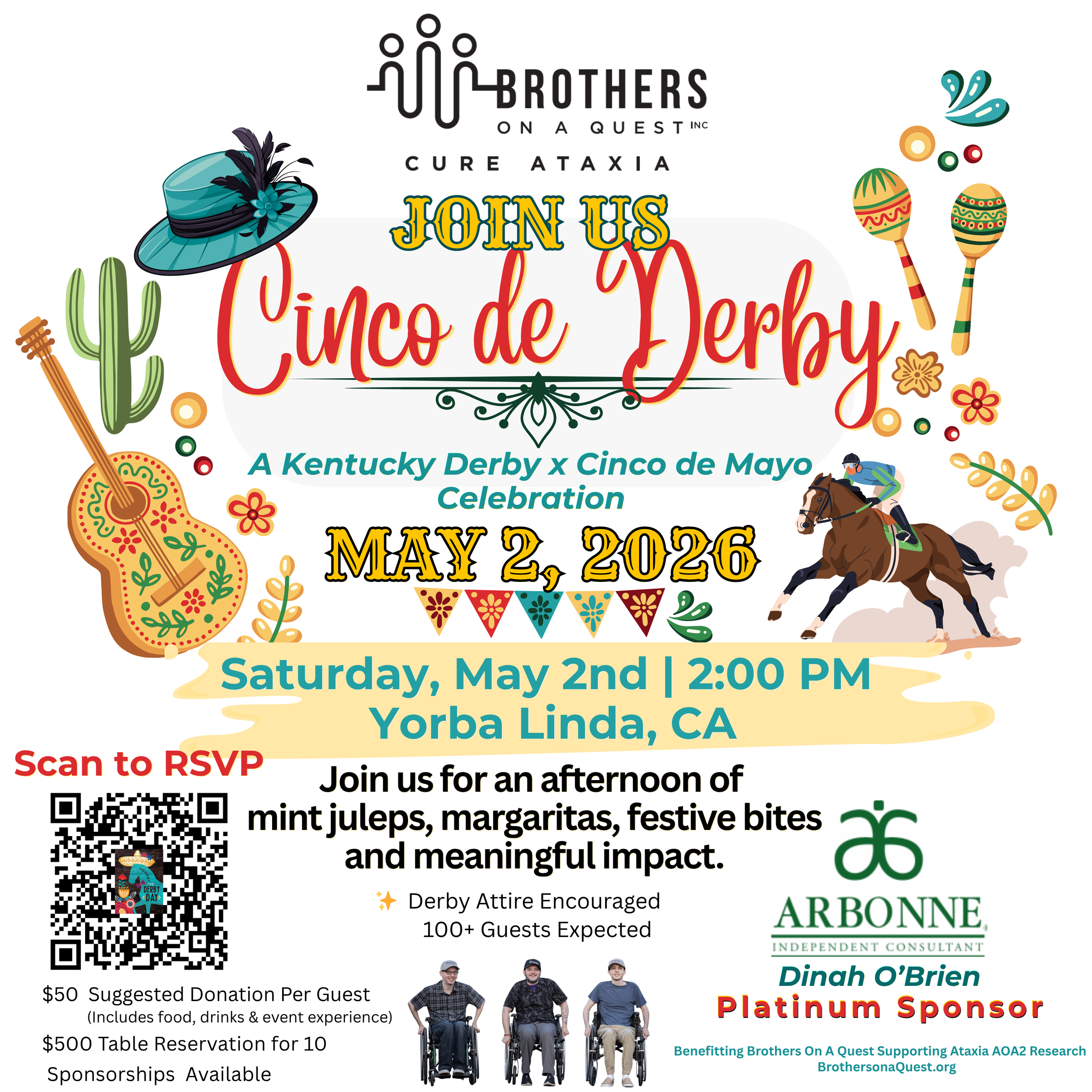 At Brothers On A Quest, our mission is to fund research, awareness and education for families affected by Ataxia AOA2.